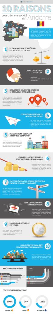 Avec cette infographie, ANDORRE INVEST vous expose les raisons pour lesquelles il est très intéressant de créer une entreprise en Andorre et d’y établir sa résidence fiscale. Voici 10 raisons qui vont vous convaincre d’investir en Andorre.